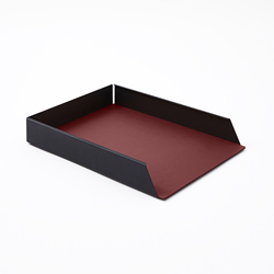 積み重ね可能なファイルトレイブラックスチール構造とリアルレザーブルゴーニュレッドcm32x24H5イタリア製