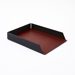İstistackable kağıt tepsisi organizatör siyah çelik yapı ve gümrüklü deri bordo kırmızı cm 32x24 H5 İtalya'da yapılan