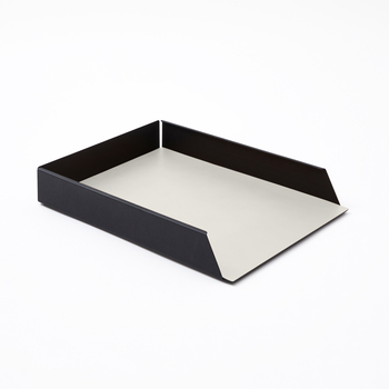 İstistackable kağıt tepsisi organizatör siyah çelik yapı ve gümrüklü deri beyaz cm 32x24 H5 İtalya'da yapılan